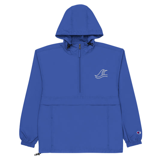 Bestickte Outdoor-Windjacke – Packbarer Anorak mit verstellbarer Kapuze